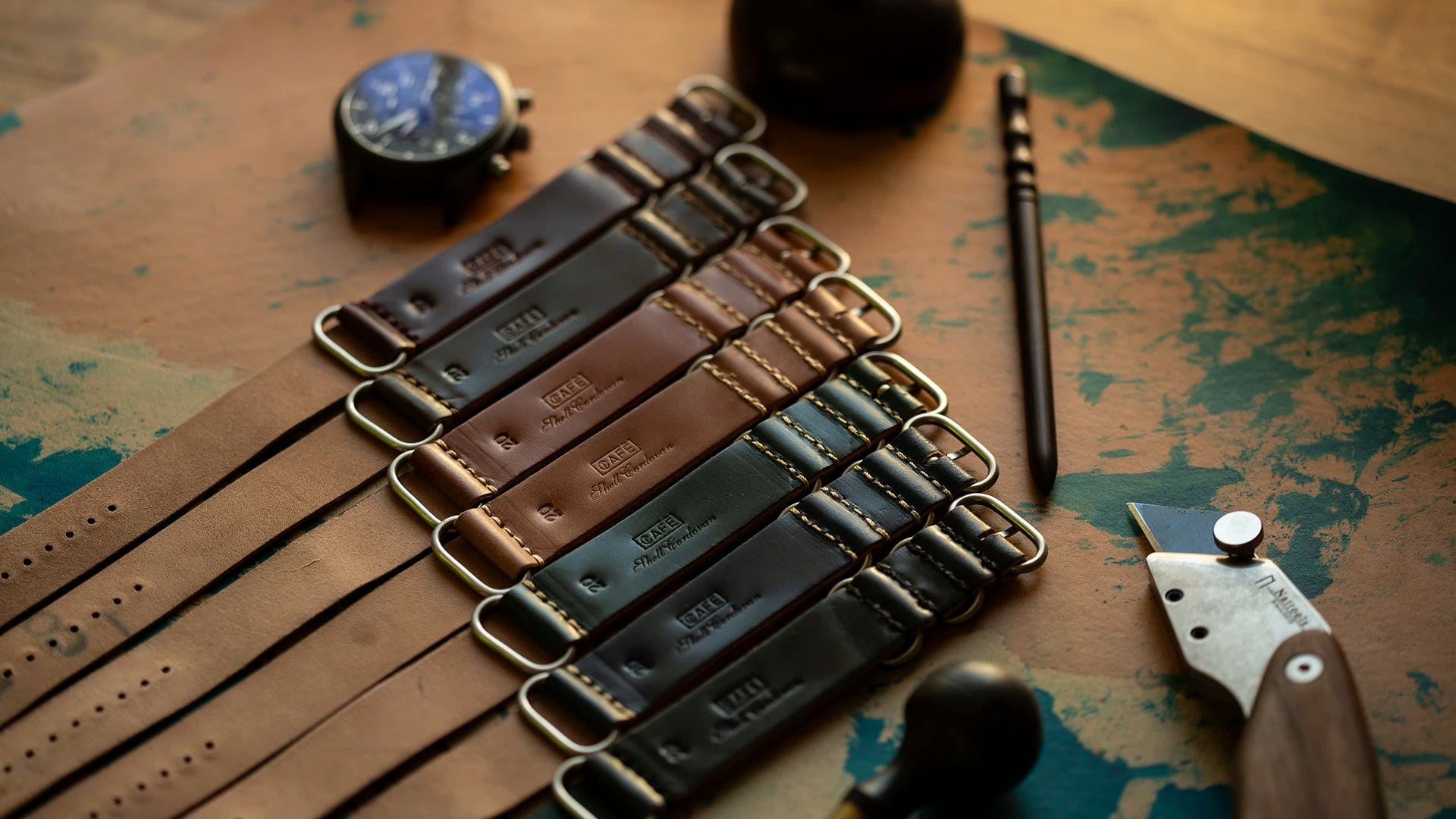 Hand-sewn stitch by stitch, our Cordovan leather straps are made by a master watchmaker artisan. They select the best Cordovan shells that come from the most exclusive manufacturers in the world such as Horween, a family factory from Chicago (USA) born in 1905.