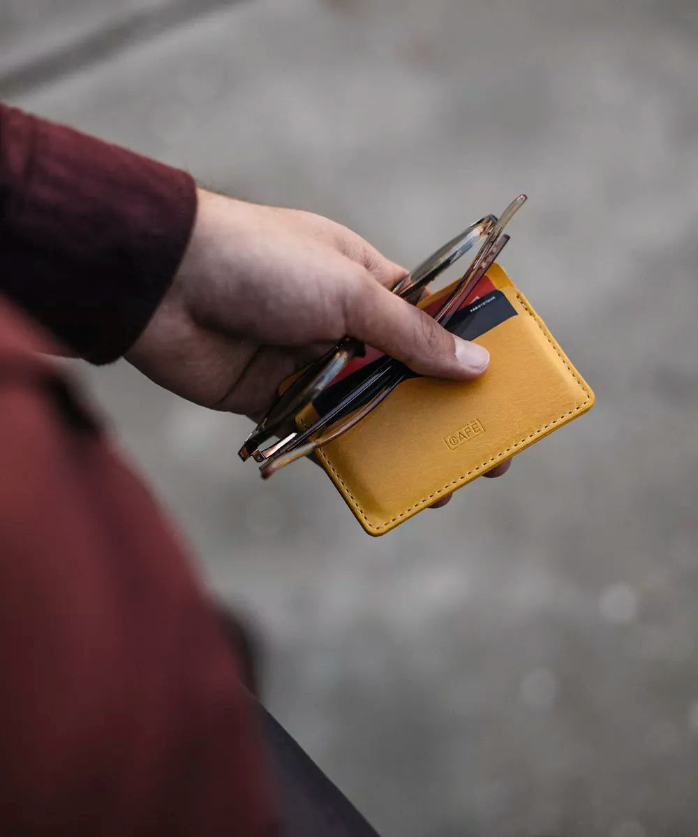 The Leather Card Holder #3 Black Coffee & Spicy Mustard